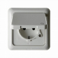 Steckdose SCHUKO mit Klappdeckel wg Up IP44 polarweiß, glänzend. Steckdose SCHUKO® mit Klappdeckel, mit Aufdruck, mit Steckklemmen nach VDE 0620 als Verbindungsklemmen ausgeführt und genehmigt, mit einteiligem Erdungsbügel. Unterputz-Installation, Feuchtraumprogramm. Material: Kunststoff, Thermoplast, bruchsicher, halogenfrei.