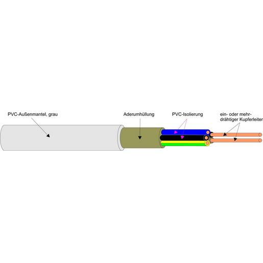 1m NYM-J 4X10 Kunststoffmantelleitung Schnitt - (11,02EUR/m)