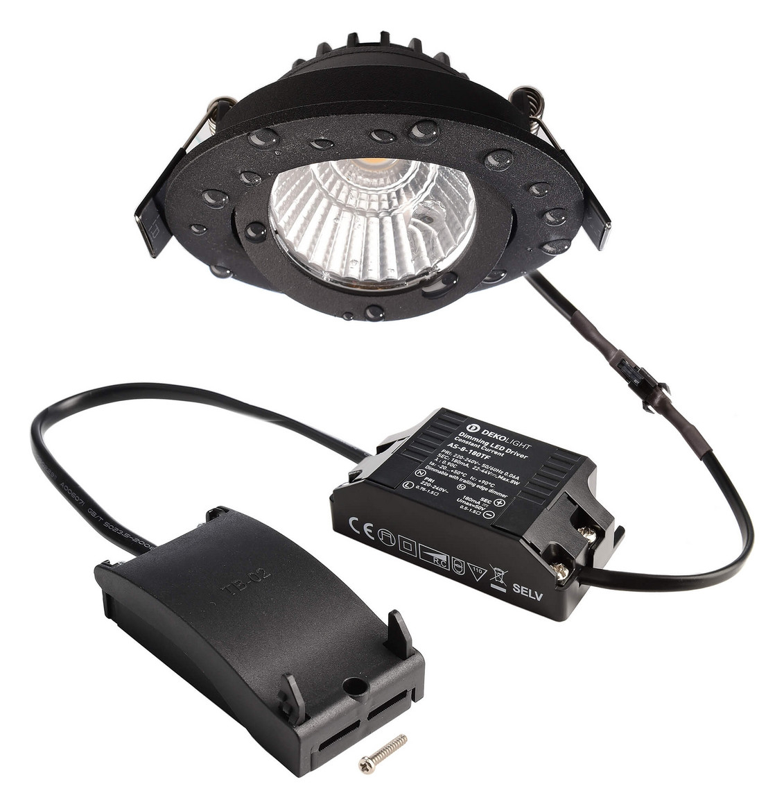 Deko-Light, Deckeneinbauleuchte, Dione IP44, 8,5 W, DIM, 4000 K, Schwarz, 800 lm, Eingangsspannung: 220-240 V/AC, Aluminium, EEI: E, IP 20, IP 44