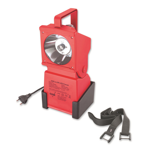 Die wiederladbare, spritzwassergeschützte Arbeits- und Notlichtleuchte aus der AccuLux-Reihe Modell JobLux 90 LED Focus hat ein Gehäuse aus robustem, schlagfestem Kunststoff. Die Linsenoptik der Power LED erzeugt einen stark fokussierten Lichtstrahl mit hoher Leuchtweite. Ein Austausch der LED-Leuchtmittel ist nicht erforderlich. Mit den 10 h Hauptlampenbetrieb ist sie in diesem Bereich unter den Führenden. Die JobLux 90 LED Focus verfügt über einen 120 schwenkbaren Leuchtkopf. Es besteht die Schaltmöglichkeit zwischen der Power LED und der LED-Pilotlampe. Der wiederladbare, wartungsfreie Blei-Gel Akku kann durch das integrierte Ladegerät an 230 V AC geladen werden und verfügt über einen Überlade- und Tiefentladeschutz. Der Ladezustand der Leuchte wird durch die integrierte rote LED angezeigt. Die Wandhalterung und ein praktischer Tragegurt sind im Lieferumfang inbegriffen.
