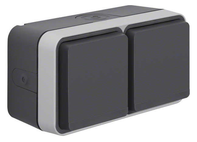 1St. Berker 47753525 Steckdose 2fach waagerecht mit Klappdeckel 4 Leitungseinf. AP W.1 grau