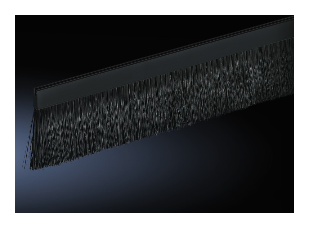 Bürstenleiste, Beschreibung: Ausbrüche zur Kabelführung an beliebigen Positionen in Seitenwand, Rückwand, Türen, Dach- und Bodenblech können mit der Bürstenleiste durch einfaches Aufstecken optisch ansprechend kaschiert werden., Kabeleinführungen, Flanschplatten, Kabelverschraubungen, Kabeldurchführungen, Kabelführungen, Kabelführungen 19