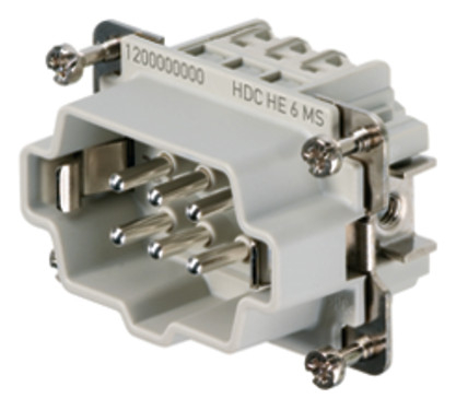 1St. Weidmüller 1200000000 Kontakteinsatz, Stift, 500 V, 24 A, Polzahl: 6, Schraubanschluss, Baugröße: 3 HDC HE 6 MS