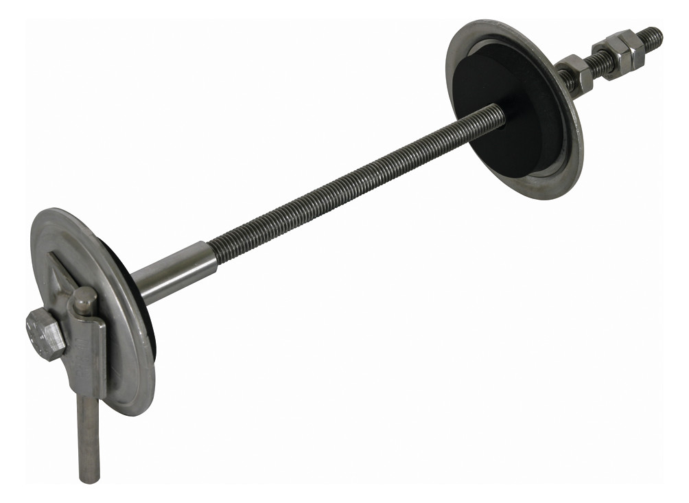 Erder- und Wanddurchführung mit MV-Klemme aus NIRO (V4A), zur druckwasserdichten Durchführung der Erd- / Potentialausgleichsleiter bei Mauern und Wänden mit Gewindestange M10 aus NIRO. Ausführung zum nachträglichen Einbau mit Bohrung (D14 mm) oder ggf. durch die Fertigspreize der Schalung. Mit Druckwasserprüfung bis 1 bar (bis Tiefe von 10 m gegenüber stehendem Wasser).