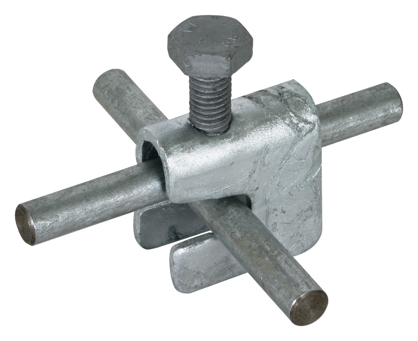 Verbindungsklemme nach DIN EN 62561-1, zum Verbinden von Betonstahlmatten oder Bewehrungen mit Rundleitern. Ausführung für T-, Kreuz- und Parallelverbindungen.