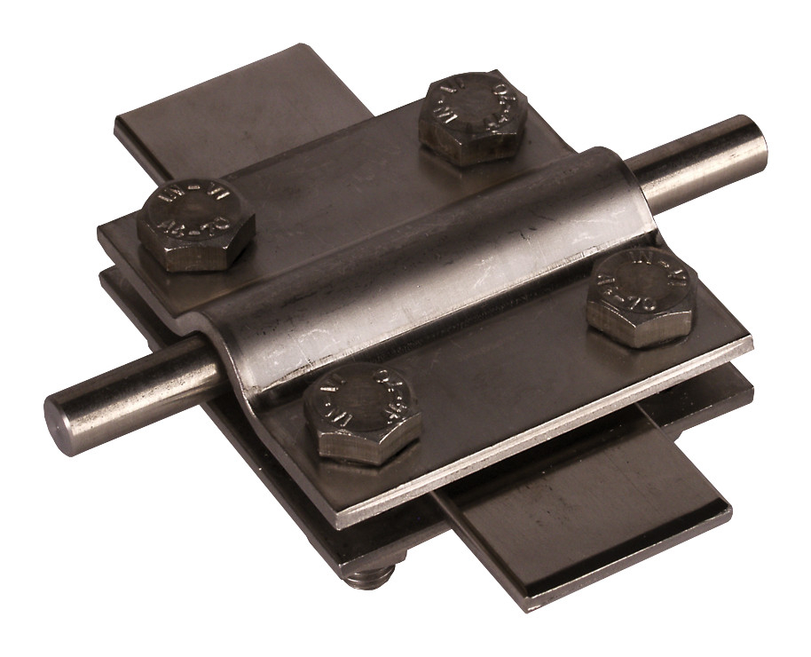 Kreuzstück nach DIN EN 62561-1, für ober- und unterirdische Verbindung von Rund- und Flachleitern. Ausführung ohne Zwischenplatte mit Schrauben M8.