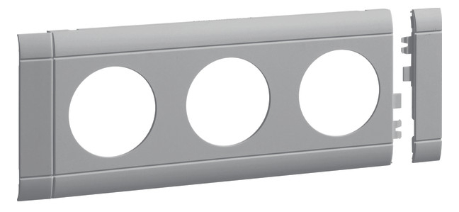 Blende 3-fach Steckdose zu Oberteil 80mm anreihbar halogenfrei lichtgrau. Blende modular für Kanalsteckdosen 3-fach, schnittkaschierend und anreihbar.