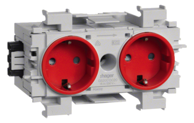 1St. Hager GS20013020 Steckdose 2-fach Frontrast. rot