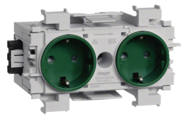 1St. Hager GS20016029 Steckdose 2-fach Wago Frontrast. grün