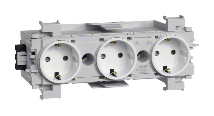 1St. Hager GS30019016 Steckdose 3-fach Frontrast. vw