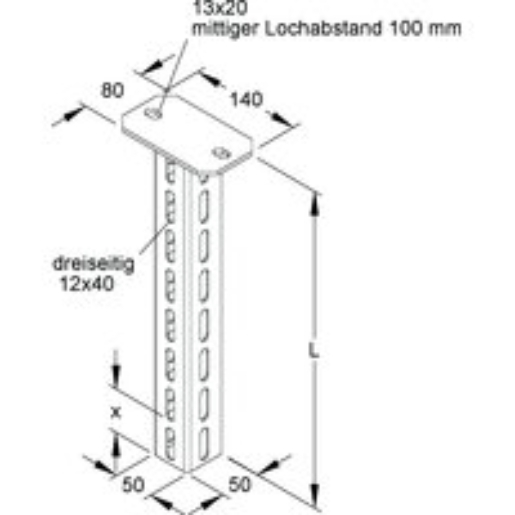 1St. Niedax HU 5050/400 Hängestiel, U-Profil, 50x50x400 mm HU5050400