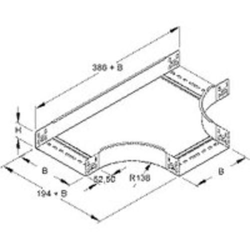 T-Stück, für Kabelrinnen, zur Herstellung von 90 T-Abgängen, bandverzinkt nach DIN EN 10327, mit integriertem Stossstellenverbinder und anteilmässigem Befestigungszubehör. Abmessung x 60 100 mm Innenholmradiu
