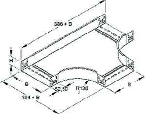 T-Stück, für Kabelrinnen, zur Herstellung von 90 T-Abgängen, bandverzinkt nach DIN EN 10327, mit integriertem Stossstellenverbinder und anteilmässigem Befestigungszubehör. Abmessung x 60 300 mm Innenholmradiu