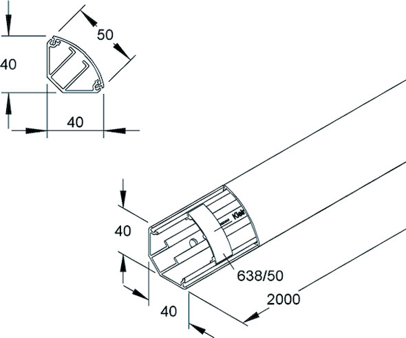 100m Kleinhuis EDK50.3 Eckkanal, mit Deckel, 40x50x40x2000 mm, - (9,26EUR/m)