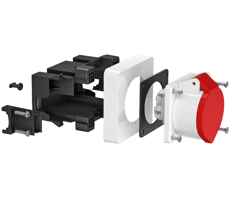 Geräteeinbaudose zum Einbau einer 3- oder 5-poligen CEE-Steckdose 16 A oder 32 A. Lieferumfang: - 1 frontrastende Geräteeinbaudose mit 4-Punkt-Befestigungsspur von 52 x 52 mm bis 70 x 70 mm - 1 Abdeckrahmen in reinweiß zur Kaschierung der Befestigungstechnik - 2 außenliegende Zugentlastungen für Mantelleitungen bis Ø 18 mm - 2 Drehriegel zur optionalen Befestigung an Kanalböden mit C-Schiene - 1 CEE-Steckdose 16 A mit Montagezubehör
