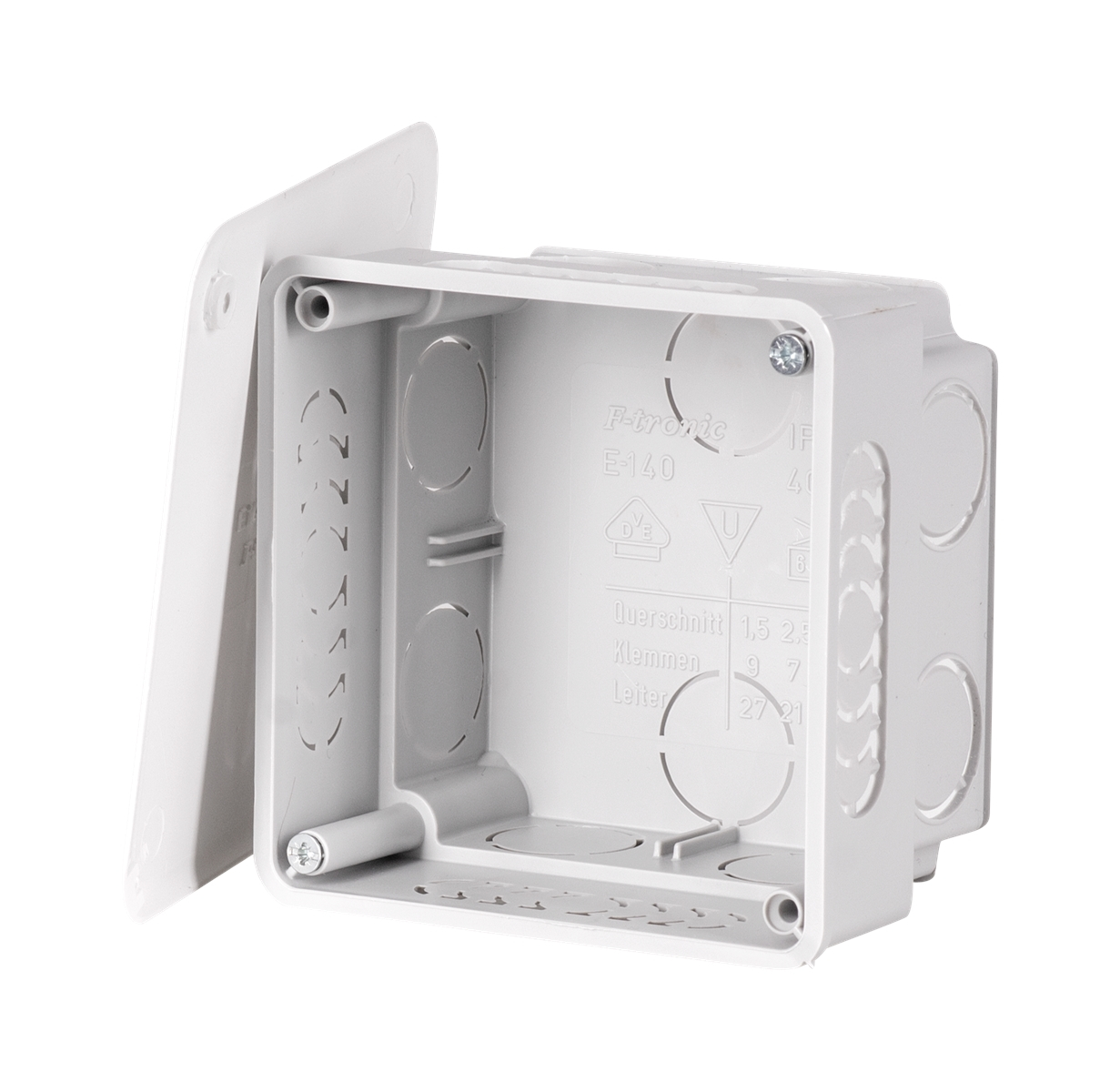 10St. F-Tronic E140 UP Abzweigkasten E140, 80x80x50mm, gr, inkl. Deckel 7310060 - (1,31EUR/Stk)