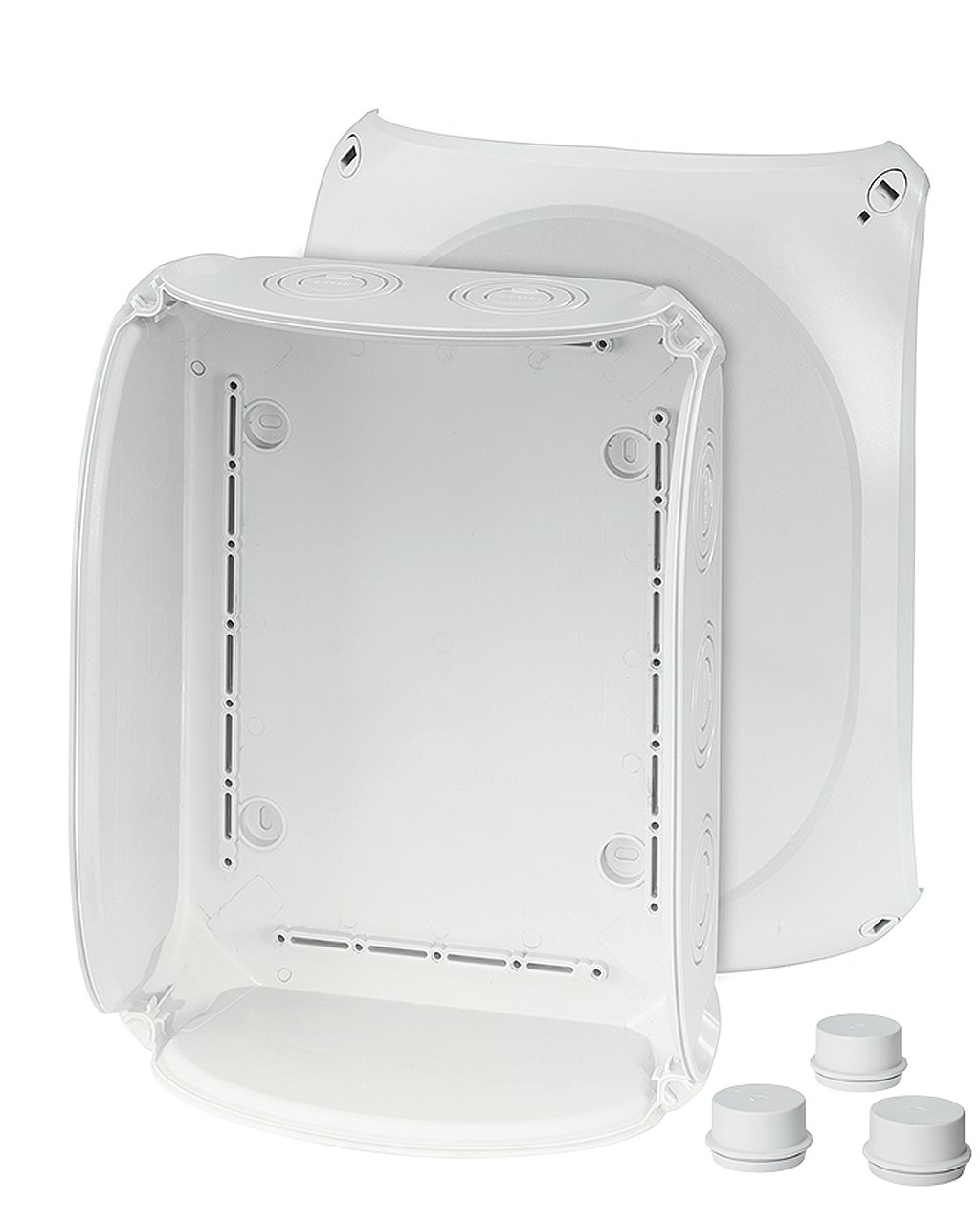 Kabelabzweigkästen nach IEC 60670-22, mit metrischen Vorpressungen. Geeignet für Innenräume und geschützte Installation im Freien nach DIN VDE 0100, Teil 737. Für Umgebungstemperatur maximal + 40 C und minimal - 25 C, bei relativer Luftfeuchte 50% bei 40 C oder 100% bei 25 C. Werkstoff Temperaturbeständigkeit von - 25 C bis 70 C, Brennverhalten nach VDE 0471, Teil 2 - Glühdrahtprüfung 750 C, UL Subject 94 V-2. Schutzart nach IEC 60529 bis IP 66 mit Anbaustutzen, Typ AKM. Werkstoff: Thermoplast, halogen- und silikonfrei. Farbe: grau, RAL 7035. Deckelbefestigung mit Schnellverschluss. Fabrikat: HENSEL ENYCASE DK. Nennquerschnitt: 35 mm²