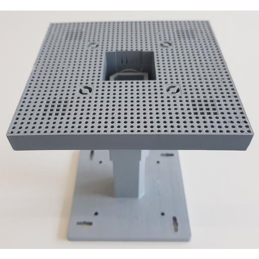 Universal Geräteträger geeignet für Isolierstärken von 80-160 mm; Maximale Befestigungsfläche 110x110mm; Geräteträger mit Rohreinführung; Gerätebefestigung mit selbstschneidenden Schrauben von Ø 3,2 bis 4mm; Gewichtsbelastung Wandmontage 30 N (5kg); Gewichtsbelastung Deckenmontage 20 N (3kg)