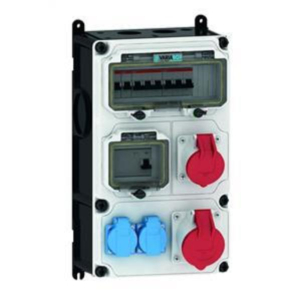Norm: DIN EN 61439, Schutzart: IP44, Gehäuse: hochwertiges, schlagfestes Kunststoffgehäuse (PBT) plombierbar, mit Außen und Innenbefestigung, Oberteil gerade und seitlich anscharniert, Absicherung auf vorziehbarer Tragschiene montiert, Deckelschrauben unverlierbar, Absicherungselemente angeordnet unter durchsichtiger Betätigungsklappe mit bedienerfreundlicher OTC Mechanik (one touch close), Gerätefarbe: Gehäuseunterteil schwarz ähnlich RAL 9017, Gehäuseoberteil grau RAL 7035, Gerätehöhe: 390 mm, Gerätebreite: 230 mm, Gerätetiefe: 145 mm, RDF-Faktor: 0,58, InA: 40, Bestückung: 2 x Schutzkontaktsteckdose 16A 230V IP54 blau 1 x CEE-Steckdose 16A 400V 5p 6h IP44 geneigt 1 x CEE-Steckdose 32A 400V 5p 6h IP44 geneigt, Absicherung/Schutzmaßnahme: 2 x C-Automat 16A 1p 1 x C-Automat 16A 3p 1 x C-Automat 32A 3p 1 x FI-Schalter 40/0,03A 4p, Leitungseinführung/Anschlussmöglichkeit: 1 x M12, 1 x M20, 2 x M40 oben 1 x M12, 1 x M20, 2 x M40 unten 1 x Zählerklemmstein 5x25 mm² / Typ: C (für Schleifleitung geeignet) Zusätzliche Informationen: Anschlussfertig verdrahtet. Installationshinweis: Nicht steckerfertige, elektrische Geräte oder Bauteile, müssen von einer qualifizierten Elektrofachkraft installiert werden. Bitte beachten Sie auch die Gebrauchsanweisung. Weitere Informationen erhalten hier § 13 NAV. EAN: 4024941206099 |