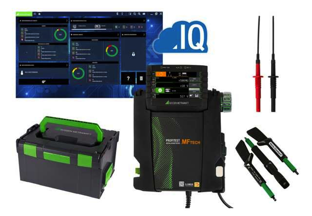 PROFiTEST MF TECH Starter-Set zur Prüfung der Wirksamkeit von Schutzmaßnahmen an ortsfesten elektrischen Anlagen nach Fertigstellung, Reparatur, Erweiterung und Wiederholungsprüfung insbesondere zur Erfüllung der DGUV Vorschrift 3. . PROFiTEST MF TECH Starter-Set mit PROFiTEST MF TECH sowie definierten Zubehör zur Prüfung der Wirksamkeit der Schutzmassnahmen an ortsfesten elektrischen Anlagen entsprechend der Prüfstandards nach IEC 60364-6 (DIN VDE 0100-600) sowie EN 50110-1 (DIN VDE 0105-100). Messkategorie 300 V CAT IV / 600 V CAT III.. Das PROFiTEST MF TECH Starter-Set macht Ihnen die Investitionsentscheidung leicht. Denn mit dem perfekt auf Ihre Anforderungen zugeschnittenen Zubehör, ist das Set besonders geeignet für ihre Prüfaufgaben u.a. im Rahmen der DGUV-Vorschrift 3. Professionelle Erfassung der Prüfobjekte und Dokumentation der Prüfung.. Kontextsensitives Farbgrafikdisplay Mess- und Prüfablauf - einfache Erstellung der Anlagenstruktur / Messen & Speichern / Protokoll generieren Vorkonfigurierte und selbst programmierbare Prüfsequenzen zur schnellen Prüfung von elektrischen Anlagen Speicherkonzept für bis zu 50.000 Datensätze Prüfung aller aktuellen allstromsensitiven RCDs, RDC-DD, RCMB Schutz des Bedieners durch PE-Erkennung bei Verwendung durch Fingerkontakt Zukunftsorientierte Konnektivität. Definiertes Zubehör für spezielle Messaufgaben Intuitive Bedienerführung mit Hilfefunktion zur Unterstützung bei anstehenden MessaufgabenAlle entscheidenden Messfunktionen – schnell über Drehschalter auswählbar.Durch das kompaktes, stoßsicheres Gehäuse mit integrierten Gummischutz besonders geeignet für den mobilen Einsatz auch auf Baustellen und in Industrieumgebung Durch umfangreiche Einstellmöglichkeiten u.a. Sprache auch geeignet für den internationalen Einsatz Vierleitermesstechnik - keine Kompensation der Messleitungen erforderlich. Prüfungen der Wirksamkeit von Schutzmaßnahmen an ortsfesten elektrischen Anlagen nach IEC 60364-6 (DIN VDE 0100-600), EN 50110-1 (DIN VDE 0105-100) und anderen länderspezifischen Normen. Prüfung von E-Ladepunkten nach EN 61851-1 (DIN VDE 0122-1).. Definiertes Zubehör für spezielle Messaufgaben Weitbereichsmesseinrichtung für alle Wechselstrom- und Drehstromnetze mit Spannungen von 65 bis 500 V und Frequenzen von 15,4 bis 420 Hz Schleifen- und Netzimpedanzmessung mit DC-Vormagnetisierung Messung des Isolationswiderstandes mit Nennspannung, mit variabler oder ansteigender Prüfspannung Niederohmmessung mit automatischer Polaritätsumkehr Prüfen von Fehlerstromschutzeinrichtungen und spezieller RCD-Schutzschalter (selektive S, SRCDs, PRCDs, Schukomat, Sidos, Typ G/R, AC, A, A-EV, F, F-EV, B, B+,B-MI) Prüfen von RDC-DD nach IEC 62955 und RCMB nach IEC 62752 Prüfen von Fehlerstrom (RCD)- Schutzschaltungen in IT-Netzen Messen des Erdungswiderstandes (Netzbetrieb) Normgerechte Prüfung von E-Ladestationen nach IEC 61851-1 in Verbindung mit einem geeigneten Prüfadaptner Autofunktion Prüfsequenzen USB-Schnittstelle Push-Print Funktion – Senden des Messwertes nach erfolgter Messung . Kontextsensitives Farbgrafikdisplay Innovatives und übergreifendes Bedienkonzept Schneller Zugriff auf Mess- und Prüffunktionen durch Drehschalter und Softkeys Anwenderfreundlich Kein aufwendiges Umstecken der Messleitungen erforderlich Modernes Datenmanagement Umfangreiches Datenverwaltungskonzept in Verbindung mit der Anwendersoftware u. a. Kunden- und Messwertverwaltung, Prüfsequenzen, Protokollierung Einzigartiges Speicherkonzept Erstellung von Anlagestrukturen – Kunde, Anlage, Maschine, Verteiler, RCD, Stromkreise, Erder, Potentialausgleichsschiene, Betriebsmittel sowie einzelne Messpunkte PUSH-PRINT Funktion Senden des Messwertes über USB nach Abschluss der erfolgten Messung Prüfsequenzen Erstellung individueller Prüfsequenzen zur schnellen und sicheren Prüfung von elektrischen Anlagen Zukunftsorientierte Konnektivität Bidirektionaler Datenaustausch (USB), Anschluss von Barcodescanner sowie USB Push-Print-Funktion. 1x PROFiTEST MF TECH 1x Schutzkontaktstecker-Einsatz (länderspezifisch) 1x 2-Pol-Messadapter und 1x Leitung zur Erweiterung zum 3-Pol-Adapter (PRO-A3-II) 2x Krokodilklemmen 1x Umhängegurt 1x Satz Akkus (Z502H) 1x Ladegerät (Z502R) 1x Kurzbedienungsanleitung 1x Beiblatt Sicherheitsinformationen 1x DAkkS-Kalibrierschein 1x USB-Schnittstellenkabel 1x VARIO STECKER SET 1x Set-Probes (Prüfspitzenset) 1x SORTIMO Kunststoffsystemkoffer mit Einlage 1x Software IZYTRONIQ BUSINESS ADVANCED 1x IZYTRONIQ Cloud Gutschein für 12 Monate