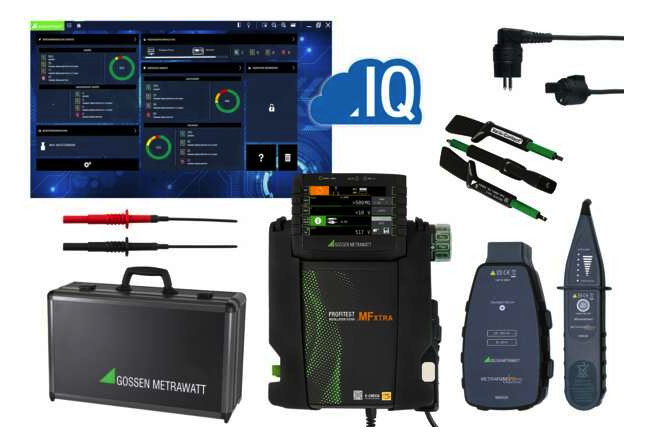 PROFiTEST MF XTRA Meister-Set zur Prüfung der Wirksamkeit von Schutzmaßnahmen an ortsfesten elektrischen Anlagen nach Fertigstellung, Reparatur, Erweiterung und Wiederholungsprüfung insbesondere zur Erfüllung der DGUV Vorschrift 3. . PROFiTEST MF XTRA Meister-Set mit PROFiTEST MF XTRA und SicherungsFinder sowie definierten Zubehör zur Prüfung der Wirksamkeit der Schutzmassnahmen an ortsfesten elektrischen Anlagen entsprechend der Prüfstandards nach IEC 60364-6 (DIN VDE 0100-600) sowie EN 50110-1 (DIN VDE 0105-100) Messkategorie 300 V CAT IV / 600 V CAT III.. Das PROFiTEST MF XTRA Meister-Set macht Ihnen die Investitionsentscheidung leicht. Denn mit dem perfekt auf Ihre Anforderungen zugeschnittenen Zubehör, ist das Set besonders geeignet für ihre Prüfaufgaben u.a. im Rahmen der DGUV-Vorschrift 3. Professionelle Erfassung der Prüfobjekte und Dokumentation der Prüfung.. Kontextsensitives Farbgrafikdisplay Mess- und Prüfablauf - einfache Erstellung der Anlagenstruktur / Messen & Speichern / Protokoll generieren Vorkonfigurierte und selbst programmierbare Prüfsequenzen zur schnellen Prüfung von elektrischen Anlagen Speicherkonzept für bis zu 50.000 Datensätze Prüfung aller aktuellen allstromsensitiven RCDs, RDC-DD, RCMB Schutz des Bedieners durch PE-Erkennung bei Verwendung durch Fingerkontakt Zukunftsorientierte Konnektivität. Definiertes Zubehör für spezielle Messaufgaben Intuitive Bedienerführung mit Hilfefunktion zur Unterstützung bei anstehenden MessaufgabenAlle entscheidenden Messfunktionen – schnell über Drehschalter auswählbar.Durch das kompaktes, stoßsicheres Gehäuse mit integrierten Gummischutz besonders geeignet für den mobilen Einsatz auch auf Baustellen und in Industrieumgebung Durch umfangreiche Einstellmöglichkeiten u.a. Sprache auch geeignet für den internationalen Einsatz Vierleitermesstechnik - keine Kompensation der Messleitungen erforderlich. Prüfungen der Wirksamkeit von Schutzmaßnahmen an ortsfesten elektrischen Anlagen nach IEC 60364-6 (DIN VDE 0100-600), EN 50110-1 (DIN VDE 0105-100) und anderen länderspezifischen Normen. Prüfung von E-Ladepunkten nach EN 61851-1 (DIN VDE 0122-1). z.B.: Allgemeine Elektroinstallationen Wechsel-/Drehstrom, öffentliche Einrichtungen, Behörden, Universitäten, Dienstleister zur DGUV-Vorschrift 3 usw.. Definiertes Zubehör für spezielle Messaufgaben Weitbereichsmesseinrichtung für alle Wechselstrom- und Drehstromnetze mit Spannungen von 65 bis 500 V und Frequenzen von 15,4 bis 420 Hz Schleifen- und Netzimpedanzmessung mit DC-Vormagnetisierung Messung des Isolationswiderstandes mit Nennspannung, mit variabler oder ansteigender Prüfspannung Niederohmmessung mit automatischer Polaritätsumkehr Prüfen von Fehlerstromschutzeinrichtungen und spezieller RCD-Schutzschalter (selektive S, SRCDs, PRCDs, Schukomat, Sidos, Typ G/R, AC, A, E-EV, F, F-EV, B, B+, B-MI) Prüfen von RDC-DD nach IEC 62955 und RCMB nach IEC 62752 Prüfen von Fehlerstrom (RCD)- Schutzschaltungen in IT-Netzen Prüfen von Isolationsüberwachungsgeräten (IMDs) Prüfen von Differenzstrom-Überwachungsgeräten (RCMs) Messen des Erdungswiderstandes (Netzbetrieb / Batteriebetrieb) Ableitstrommessung mit Adapter PRO-AB Normgerechte Prüfung von E-Ladestationen nach IEC 61851-1 in Verbindung mit einem geeigneten Prüfadapter Prüfung von PRCD Typ S und K mittels PROFITEST PRCD Restspanungsmessung nach EN 60204-1 Autofunktion Prüfsequenzen USB-Schnittstelle Push-Print Funktion – Senden des Messwertes nach erfolgter Messung . Kontextsensitives Farbgrafikdisplay Innovatives und übergreifendes Bedienkonzept Schneller Zugriff auf Mess- und Prüffunktionen durch Drehschalter und Softkeys Anwenderfreundlich Kein aufwendiges Umstecken der Messleitungen erforderlich Modernes Datenmanagement Umfangreiches Datenverwaltungskonzept in Verbindung mit der Anwendersoftware u. a. Kunden- und Messwertverwaltung, Prüfsequenzen, Protokollierung Einzigartiges Speicherkonzept Erstellung von Anlagestrukturen – Kunde, Anlage, Maschine, Verteiler, RCD, Stromkreise, Erder, Potentialausgleichsschiene, Betriebsmittel sowie einzelne Messpunkte PUSH-PRINT Funktion Senden des Messwertes über USB nach Abschluss der erfolgten Messung Prüfsequenzen Erstellung individueller Prüfsequenzen zur schnellen und sicheren Prüfung von elektrischen Anlagen Zukunftsorientierte Konnektivität Bidirektionaler Datenaustausch (USB), Anschluss von Barcodescanner sowie USB Push-Print-Funktion. 1x PROFiTEST MF XTRA 1x Schutzkontaktstecker-Einsatz (länderspezifisch) 1x 2-Pol-Messadapter und 1x Leitung zur Erweiterung zum 3-Pol-Adapter (PRO-A3-II) 2x Krokodilklemmen 1x Umhängegurt 1x Satz Akkus (Z502H) 1x Ladegerät (Z502R) 1x Kurzbedienungsanleitung 1x Beiblatt Sicherheitsinformationen 1x DAkkS-Kalibrierschein 1x USB-Schnittstellenkabel 1x VARIO STECKER SET 1x Set-Probes (Prüfspitzenset) 1x Profikoffer 1x PRO-W 1x METRAFUSE FD PRO 1x Software IZYTRONIQ BUSINESS PROFESSIONAL 1x IZYTRONIQ Cloud Gutschein für 12 Monate