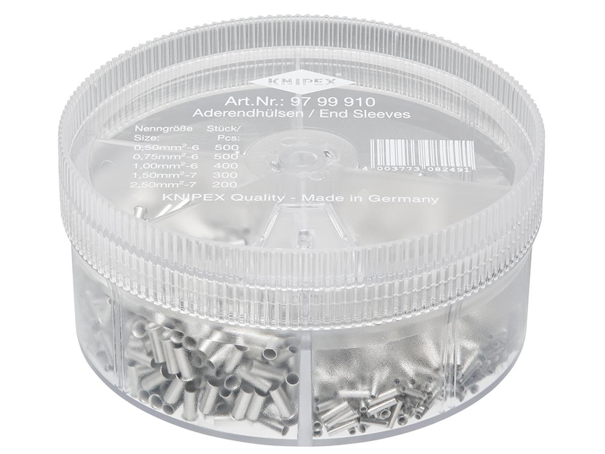 1St. Knipex 97 99 910 Sortimentsboxen mit Aderendhülsen unisolierte Aderendhülsen 500x0,50/500x0,75/400x1,0/300x1,5/200x