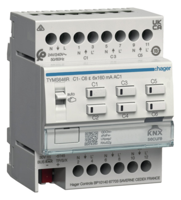 1St. Hager TYMS646R Heiz.-aktor 6f KNX Sec, m.Regl., 24/230V