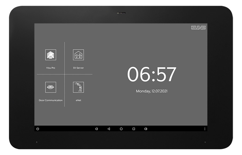 Visualisieren und Bedienen von Anlagenzuständen in der Gebäudeautomation Montage waagerecht (empfohlen) oder senkrecht Montage in UP-Einbaugehäuse (Art.-Nr. EBG 24) oder auf Gerätedose mit Abmessungen nach DIN 49073 (Empfehlung: ca. 60 mm tief) Produkteigenschaften Hochauflösendes HD-Display Näherungssensor Kapazitiver Touchscreen Reinigungsmodus mit Touchscreen-Sperre Lüfterlos, ohne mechanisch bewegliche Teile KNX-Visualisierung in Verbindung mit Visu Pro Server (Art.-Nr.: JVP-SERVER-H2, JVP-SENEC-H2) KNX-Visualisierung in Verbindung mit Smart Visu Server (Art.-Nr.: SV-SERVER) eNet-Visualisierung in Verbindung mit eNet Server REG (Art.-Nr.: ENET-SERVER) ab Software Version 2.2 Türsprechfunktion nur in Verbindung mit dem Smart Gateway SG 650-.. oder SG 150-.. von Siedle Anzeige von bis zu sechs IP-Kamerabildern Bildspeicher integriert in Smart Gateway Installationshinweis: Nicht steckerfertige, elektrische Geräte oder Bauteile, müssen von einer qualifizierten Elektrofachkraft installiert werden. Bitte beachten Sie auch die Gebrauchsanweisung. Weitere Informationen erhalten hier § 13 NAV. EAN: 4011377206533 |