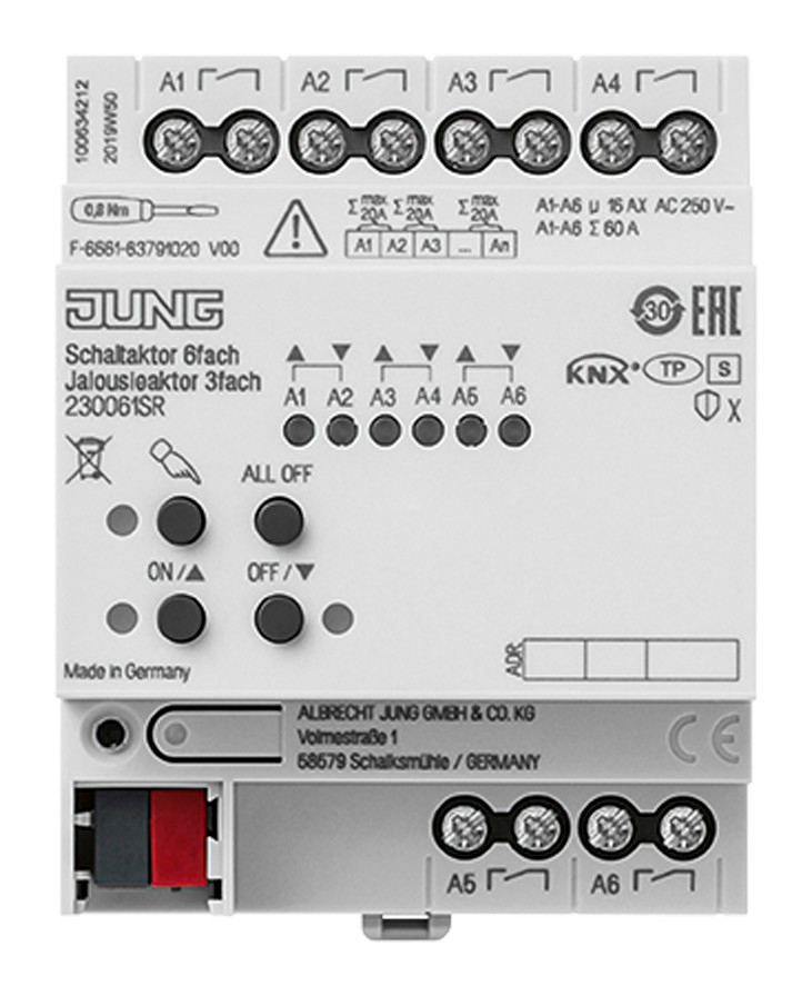 1St. Jung 230061SR KNX Schaltaktor 6fach, KNX Jalousieaktor 3fach 23006 1S R