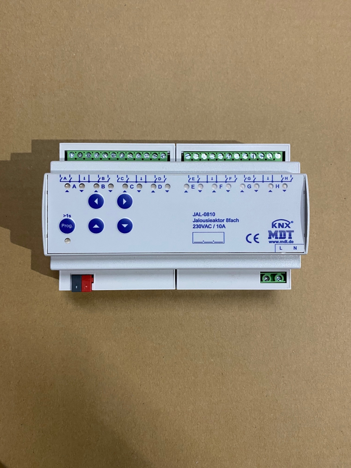 1St. MDT Jalousieaktor 8-fach JAL-0810M.02 mit Fahrzeitmessung 230VAC 8TE
