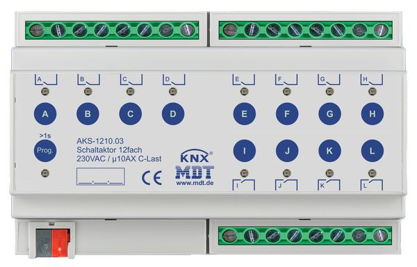 1St. MDT Schaltaktor 12-fach REG AKS-1210.03 230VAC C-Last Standard 140 F 8TE