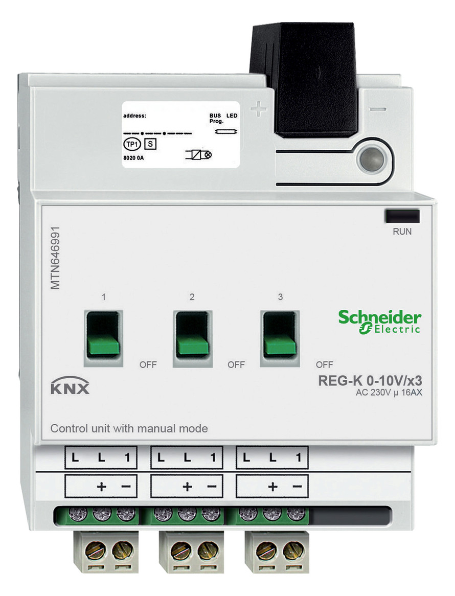 1St. Schneider Electric MTN646991 Steuereinheit 0-10 V REG-K/3fach mit Handbetätigung, lichtgrau