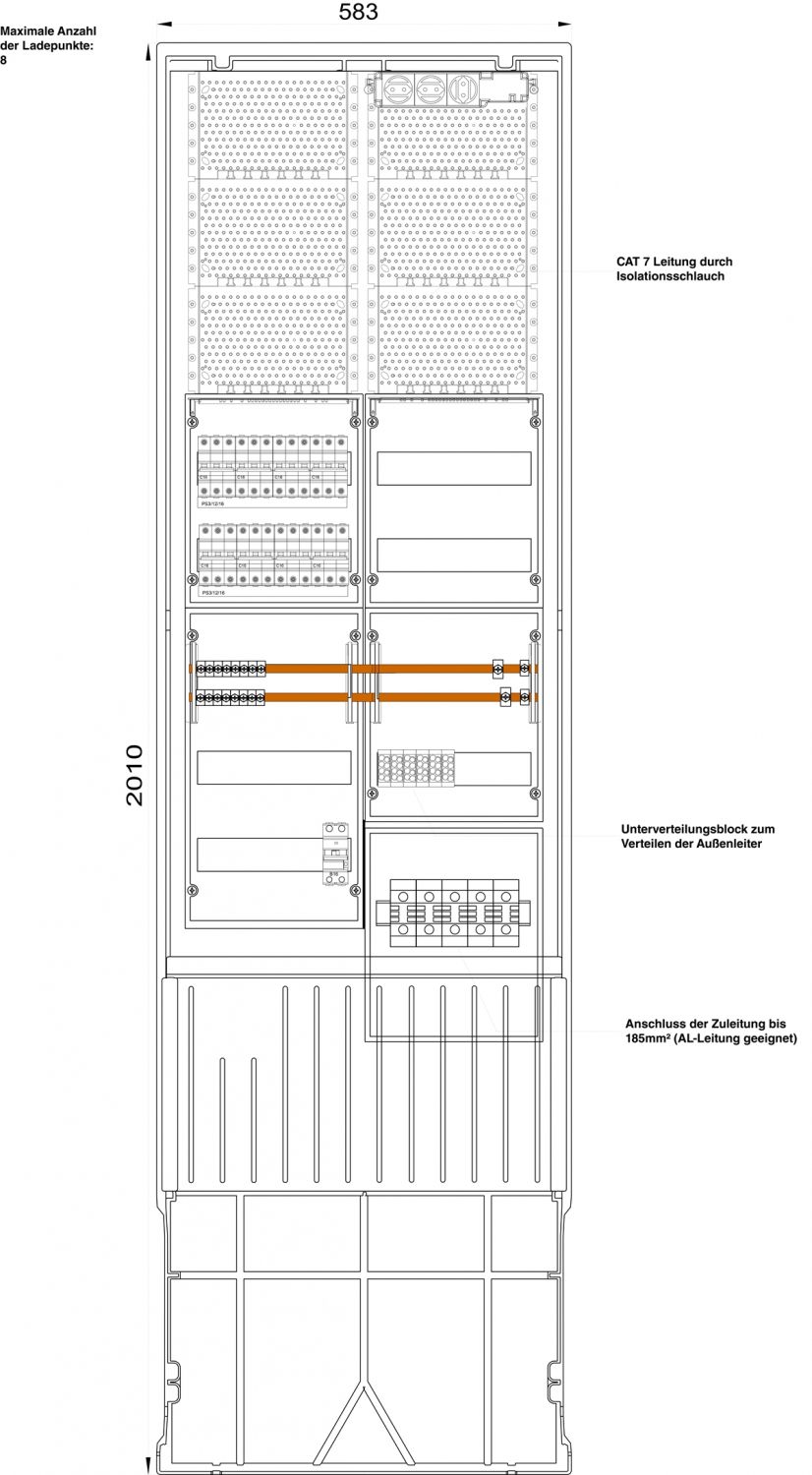 1St. F-Tronic ZSA202DRH-EMOB811kW E-MOB Säule 8 Ladepunkte 11kW, mit LS-Schalter C16 3polig 6kA, ZSA202DRH-EMOB8-11kW 7160185