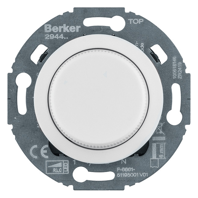 1St. Berker 294410 Universal-Drehdimmer mit Zentralstück (R, L, C, LED), Serie 1930/Glas, pw. gl.