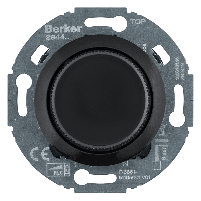 1St. Berker 294411 Universal-Drehdimmer mit Zentralstück (R, L, C, LED), Serie 1930/Glas, schw. gl.