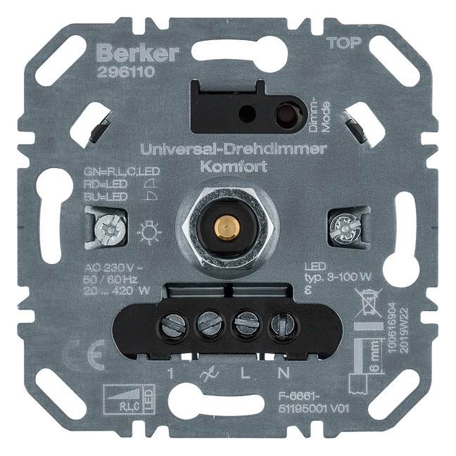 1St. Berker 296110 Universal-Drehdimmer Komfort (R L C LED) Softrastung Lichtsteuerung