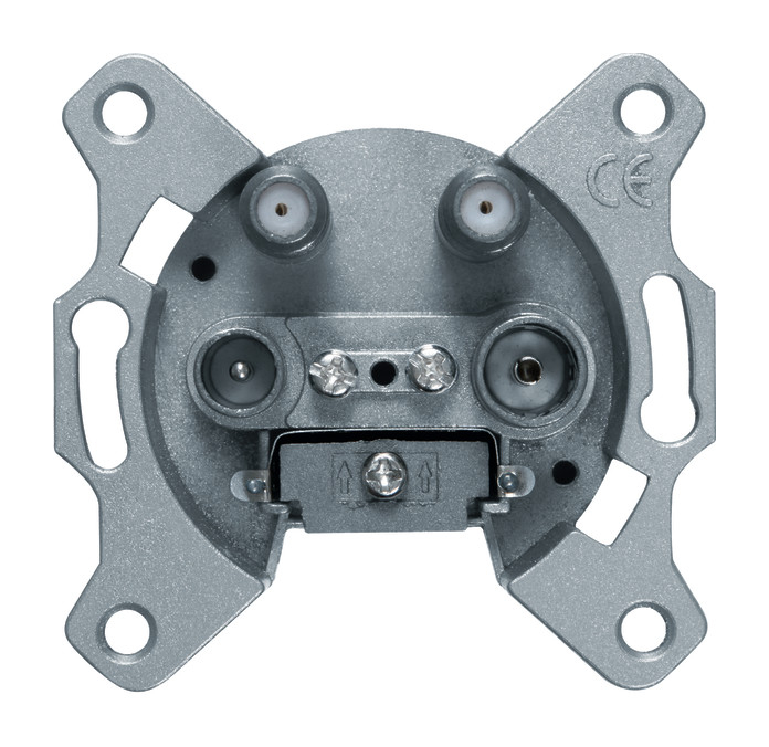 Antennen-Steckdose 4Loch 2SAT,TV,FM, Einzeldose. Antennen-Steckdose mit Steckklemmen für Gemeinschafts- und Breitbandkabelanlagen, Multiswitch-Anlagen, SAT-Einzel- und Verteileranlagen, digitale und analoge Übertragung, terrestrischen Empfang, in Sternstruktur oder entkoppelten Stichleitungen, HDTV geeignet, 2 unabhängigen SAT-Ausgängen (F-Buchsen) und 2 IEC-Ausgängen (male/female), gleichzeitigen Anschluss von Ton-, und Fernsehempfänger sowie 2 unabhängige SAT-Receiver, fernspeisbar über F-Buchse, gleichspannungsdurchlässig.