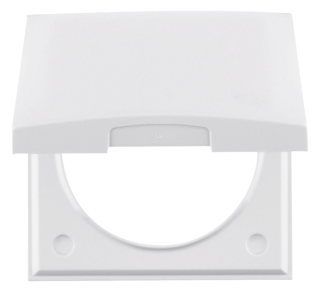 Rahmen mit Klappdeckel, Integro Flow/Pure, polarweiß glänzend. Klappdeckel für Modul-Steckdoseneinsatz.