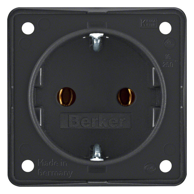 Steckdose Berker Integro anthrazit, matt - mit Steckklemmen - 16 A, 250 V~ Verbindungsklemmen VDE 0620-1 Geeignet für Berker Integro Berührungsschutzdosen Ø 45 mm (außer der flachen Ausführung) und Ø 49 mm.
