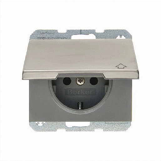 1St. Berker 47517204 Steckdose mit selbstschl. Klappdeckel u. erh Berührungsschutz K.5 Edelstahl Rostfrei