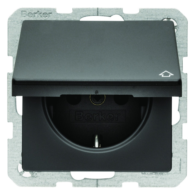 1St. Berker 47516066 Steckdose SCHUKO mit Klappdeckel Q.1/Q.3/Q.7 anthrazit samt
