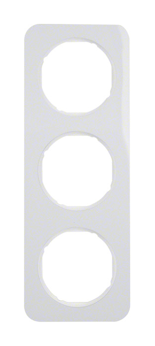 Rahmen 3fach R.1 polarweiß, glänzend. Abdeckrahmen für senkrechte und waagerechte Montage, (B x H) 80,7 x 222,7 mm. Für Verwendung von polarweißen Zentralstücken. Unterputz-Installation, Flächen-/Designprogramm, 3-fach. Material: Kunststoff, Thermoplast, bruchsicher, halogenfrei.