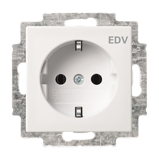 1St. Busch-Jaeger 20 EUC/DV-914 Steckdosen-Einsatz, mit Aufdruck EDV Busch-balance SI alpinweiß