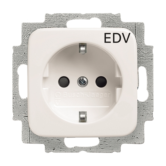 1St. Busch-Jaeger 20 EUC/DV-214 Steckdosen-Einsatz, mit Aufdruck EDV Reflex SI alpinweiß