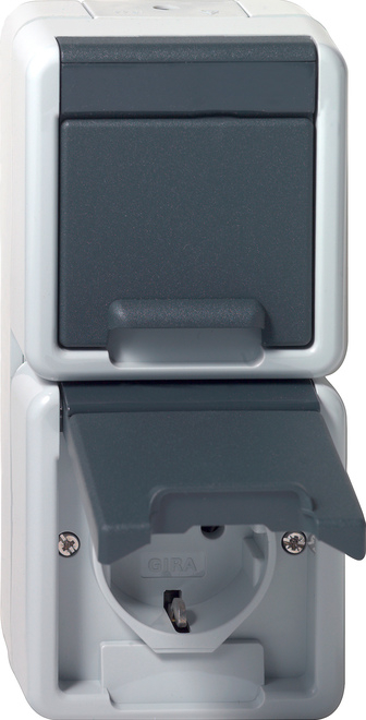 1St. Gira 478030 Doppelsteckdose 16A 250V senkrecht mit Klappdeckel WG AP Grau