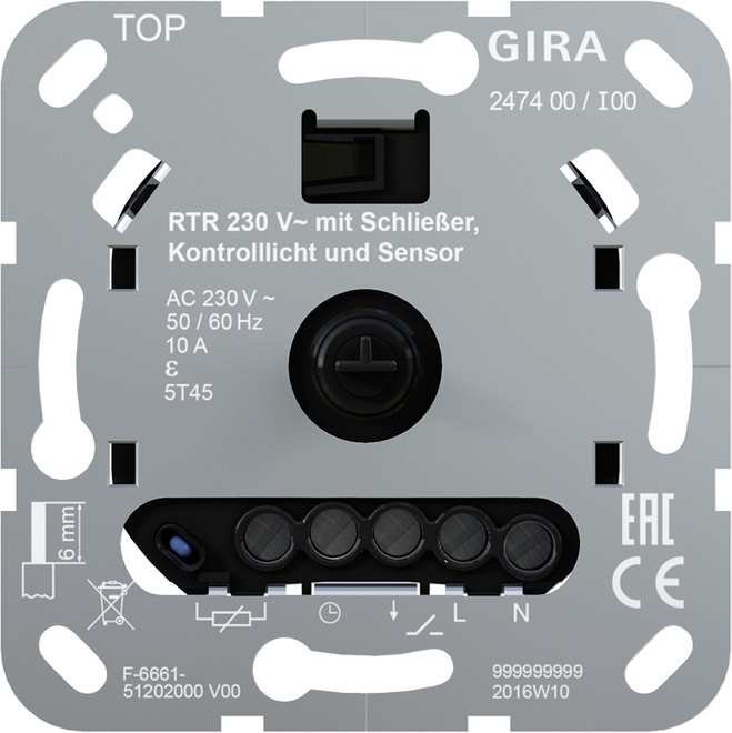 1St. Gira 247400 RTR 230V mit Schließer, Kontrolllicht und Sensor für elektrische Fußbodenheizung