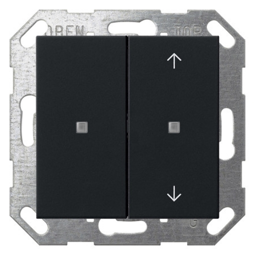 KNX Taster, Wippe 2fach unbedruckt Pfeilsymbole System 55 Schwarz matt Merkmale: KNX Taster mit integriertem Busankoppler. Integrierter Temperatursensor. Wippen- oder Tastenfunktion für jede Bedienfläche einstellbar. Steuerung von bis zu vier Funktionen über die Tastenfunktion des KNX Tasters möglich. Bedienfunktionen: Bedienkonzept Tasten- oder Wippenfunktion ist parametrierbar. Schalten, Dimmen und Farbtemperatur, Farbsteuerung und Helligkeit, Jalousie, Wertgeber, Szenennebenstelle, 2-Kanal-Bedienung und Reglernebenstelle. Schalten: Der Befehl beim Drücken und oder Loslassen ist einstellbar (Keine Reaktion, Einschalten, Ausschalten, Umschalten). Dimmen und Farbtemperatur: Helligkeit und oder Farbtemperatur, der Befehl beim Drücken, die Zeit zwischen Schalten und Dimmen, das Dimmen in verschiedenen Stufen, die Telegrammwiederholung bei langer Betätigung und das Senden eines Stopptelegramms bei Ende der Betätigung ist einstellbar. Farbsteuerung und Helligkeit: Farbkreisdurchlauf oder Helligkeitsverstellung, der Befehl beim Drücken, die Zeit zwischen Schalten und Dimmen, der Startwert, die Schrittweite und die Zeit zwischen zwei Telegrammen ist einstellbar. Jalousie: Der Befehl beim Drücken und das Bedienkonzept ist einstellbar. Das Bedienkonzept kann in den Zeiten für kurze und lange Betätigung und Lamellenverstellung angepasst werden. Wertgeber: Die Funktionsweise (1 Byte, 2 Byte, 3 Byte oder 6 Byte Wertgeber) und der Wert ist einstellbar. Szenennebenstelle: Die Funktionsweise (ohne oder mit Speicherfunktion) und die Szenennummer ist einstellbar. 2-Kanal-Bedienung: Durch einen Tastendruck können bis zu zwei Telegramme auf den KNX ausgesendet werden. Das Bedienkonzept kann eingestellt und die Zeit für kurze und lange Betätigung angepasst werden. Die Funktionsweise der Kanäle ist getrennt voneinander einstellbar. Reglernebenstelle: Die Funktionsweise (Betriebsmodusumschaltung, Zwang-Betriebsmodusumschaltung, Präsenzfunktion und Sollwertverschiebung) ist einstellbar. Sperrfunktion zum Sperren von einzelnen Tasten bzw. Wippen. Reglernebenstellen-Eigenschaften: Die Reglernebenstelle ist als Funktion einer Wippe bzw. Taste parametrierbar. Steuerung eines Raumtemperaturreglers (Betriebsmodi, Präsenzfunktion und Sollwertverschiebung). Auswertung des Reglerzustandes über die Status-LED. Temperaturmessung ist aktivierbar. Messung der Raumtemperatur mit internen Fühler oder optional durch eine Messwertbildung der intern gemessenen Temperatur mit einer externen Temperatur. Funktionen der Status-LED: Die Funktionsauswahl erfolgt je Status-LED. Folgende Funktionen sind parametrierbar: immer AUS, immer EIN, Betätigungsanzeige, Telegrammquittierung, Statusanzeige, Ansteuerung über separates LED-Objekt, Betriebsmodusanzeige, Anzeige Reglerstatus, Anzeige Präsenzstatus und Anzeige Sollwertverschiebung. Farbe ist parametrierbar. Die Farbauswahl erfolgt entweder gemeinsam für alle Status-LED oder getrennt für jede Status-LED des Gerätes. Die Status-LED können wahlweise rot, grün oder blau leuchten. Die Helligkeit der Status-LED ist in fünf Stufen einstellbar. Mit der Nachtabsenkung kann die Helligkeit der Status-LED in den Nachtstunden über Kommunikationsobjekt reduziert werden. Hinweise : KNX Data Secure kompatibel. Firmware-Updates sind mit der Gira ETS Service-App (Zusatzsoftware) möglich. Bei Verwendung von Gira TX_44, Adapterrahmen IP20 und Abdeckung aus dem System 55 verwenden. Die Wippen sind optional gegen alternative Varianten austauschbar.