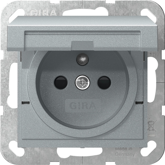 1St. Gira 448826 Steckdose mit Erdungsstift 16A 250V, Klappdeckel und Shutter, Aluminium