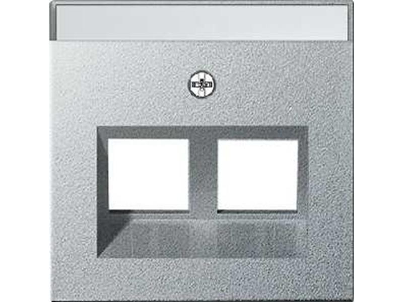 Abdeckung mit 30 Schrägauslass und Beschriftungsfeld für Tragring Modular Jack 2fach Farbe Alu