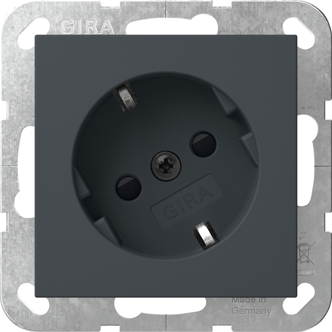 1St. Gira 441828 Steckdose 16A 250V mit um 30 gedrehtem Einsatz und Shutter, ohne Befestigungskrallen, Anthrazit